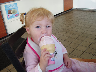 Our first outing as a family of four was to Baskin Robbins. Clare got her first strawberry ice cream cone. She absolutely loved it and half way through it Mitch and I both wondered why we hadn't thought to get her sugar free. She definitely had a sugar high. It was a lot of fun and we look forward to many more trips to the ice cream parlor with the girls.